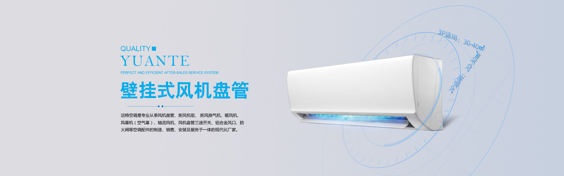 山東遠特空調(diào)設(shè)備有限公司座落于素有“九達天衢、神京門戶”美譽之稱的中央空調(diào)城:德州,是專業(yè)從事風(fēng)機盤管、新風(fēng)機組、 新風(fēng)換氣機、暖風(fēng)機、 風(fēng)幕機(空氣幕)、軸流風(fēng)機、風(fēng)機盤管三速開關(guān)、鋁合金風(fēng)口、防火閥等空調(diào)配件的制造、銷售、安裝及服務(wù)于一體的現(xiàn)代化廠家。 遠特空調(diào)生產(chǎn)的產(chǎn)品主要有: ?風(fēng)機盤管類:臥式暗裝、臥式明裝、立式暗裝、立式明裝、壁掛式、立柱式風(fēng)機盤管等; 新風(fēng)機組類:吊頂式新風(fēng)機組、立式新風(fēng)機組、臥式新風(fēng)機組等; 新風(fēng)換氣機類:吊頂式新風(fēng)換氣機、臥式新風(fēng)換氣機、立式新風(fēng)換氣機等; 空調(diào)配件類:鋁合金風(fēng)口、對開多葉風(fēng)量調(diào)節(jié)閥、防火閥、排煙風(fēng)口、防火風(fēng)口、板式排煙口、三速開關(guān)、溫控器、電動閥、新風(fēng)機組表冷器等; 風(fēng)機類:玻璃鋼負(fù)壓風(fēng)機、暖風(fēng)機、軸流風(fēng)機、離心風(fēng)機、斜流風(fēng)機、混流風(fēng)機、風(fēng)機箱等; 風(fēng)幕機類:普通貫流式風(fēng)幕機(遙控型、感應(yīng)型)、電熱型貫流式風(fēng)幕機(遙控型、感應(yīng)型)、離心式風(fēng)幕機等;